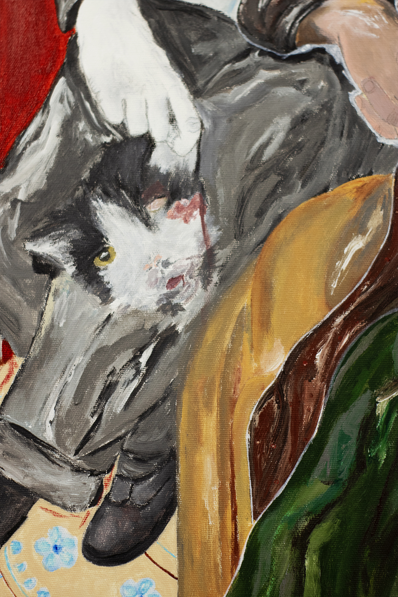Couple & cat, 2021, mixed media on canvas, 105 x 140 cm.