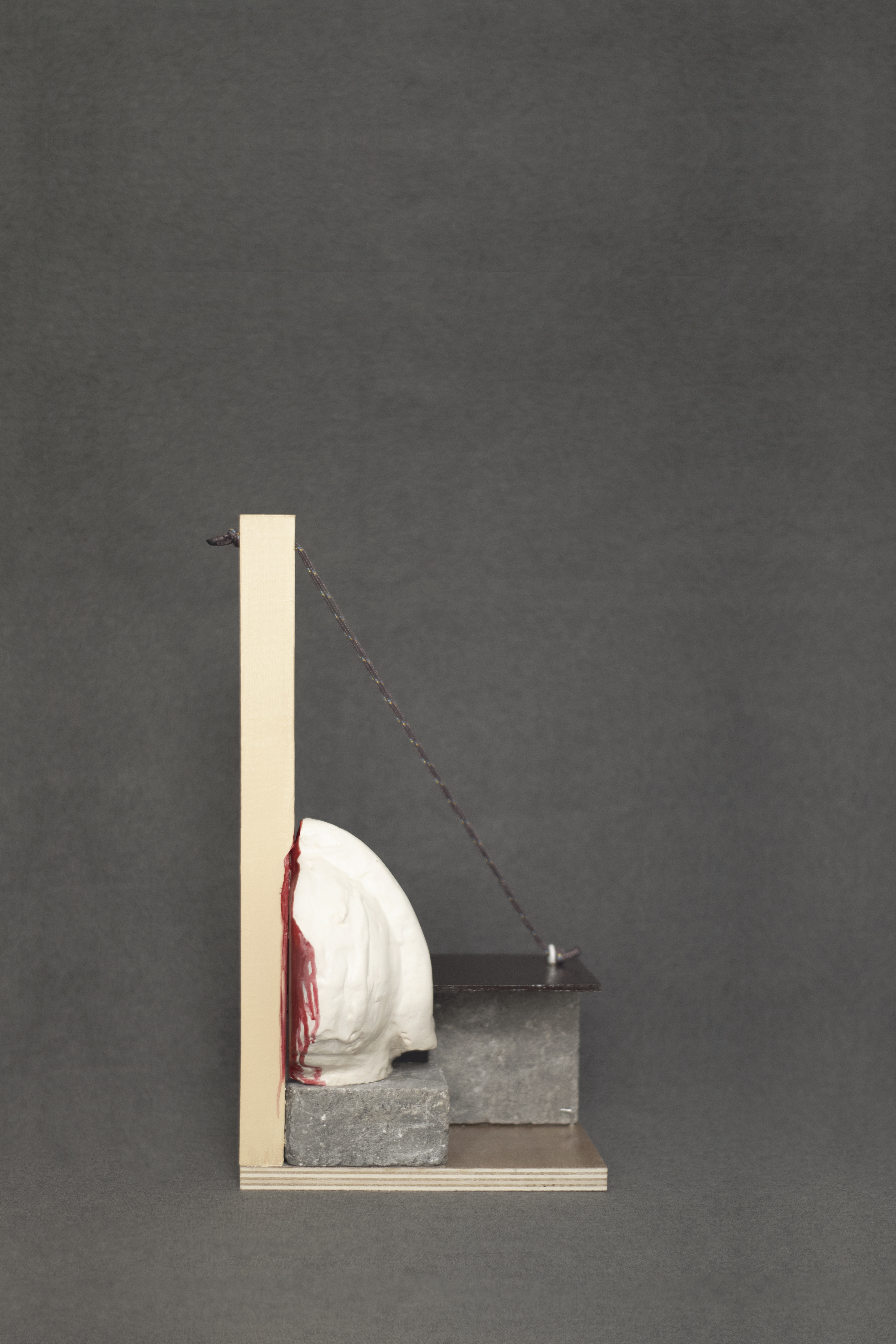 Half, 2021, plaster, cobblestones and plywood, 22 x 28 x 49 cm.