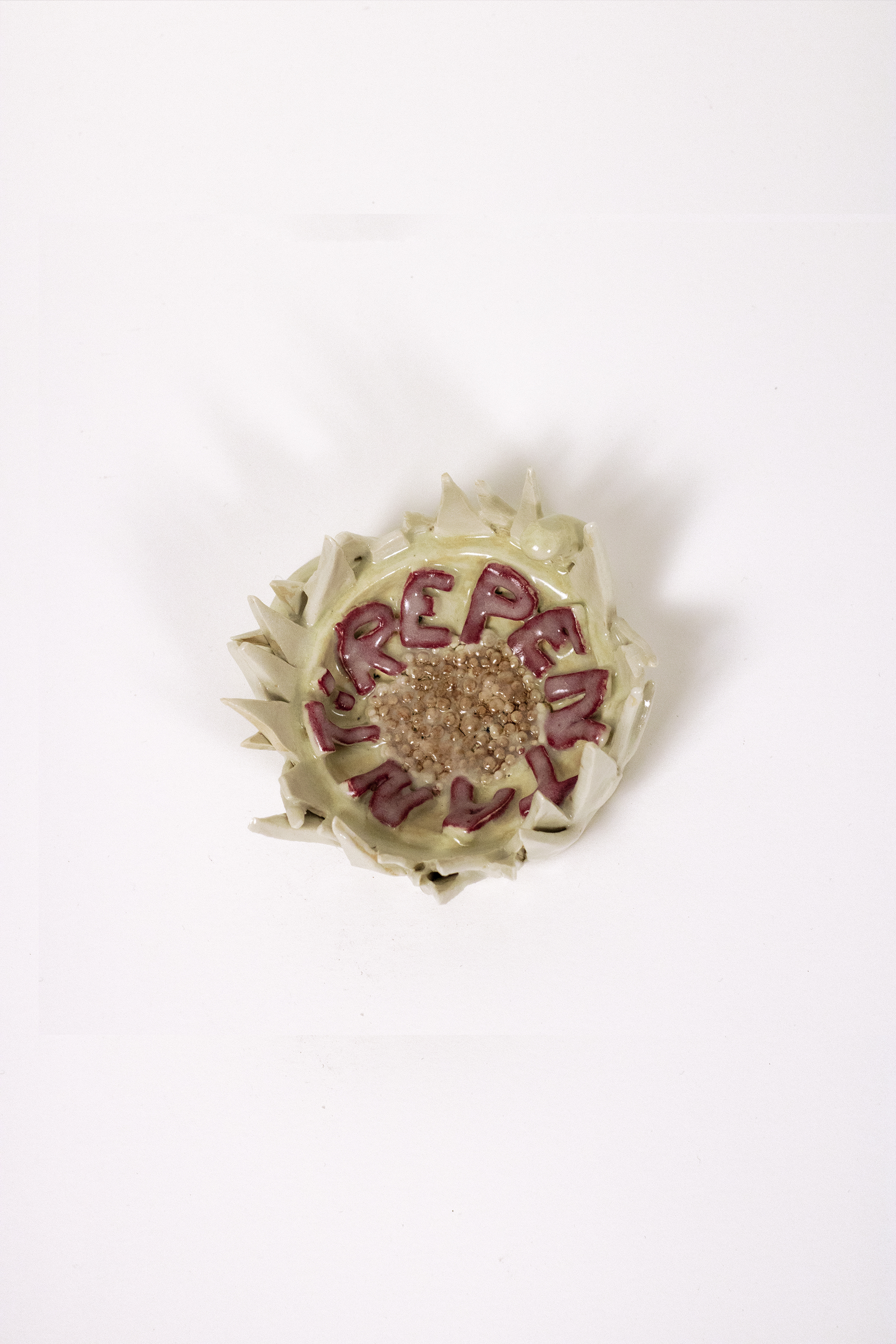 Repellant, 2021, colored and glazed stoneware, 9 x 9 x 7 cm.